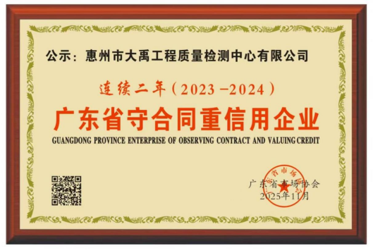 惠州水務(wù)集團大禹檢測公司連續榮膺“廣東省守合同重信用企業(yè)”稱(chēng)號