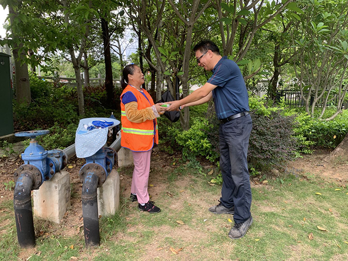 近段時(shí)間連日高溫,驕陽(yáng)似火,酷暑難耐,但仍有一群人奮戰在高溫中,堅守崗位,用辛勤的汗水和默默地付出,生動(dòng)詮釋著(zhù)他們的職業(yè)精神??崾畋迫?,真情暖人。工作人員先后走訪(fǎng)了在黃洞橋、部隊橋、上游段都田村工作的工人,親手將降暑飲品送到一線(xiàn)環(huán)衛工人手中,對他們頭頂烈日、堅守崗位、一絲不茍的工作態(tài)度表示衷心的感謝和崇高的敬意。每到一處,工作人員都會(huì )與工人噓寒問(wèn)暖,拉家常、談變化,關(guān)切地詢(xún)問(wèn)他們的生活、身體、日常飲食起居情況,了解他們當前所面臨的困難,并再三叮囑他們在堅守崗位的同時(shí),注意防暑,合理安排工作和休息時(shí)間,確保健康平安度夏。