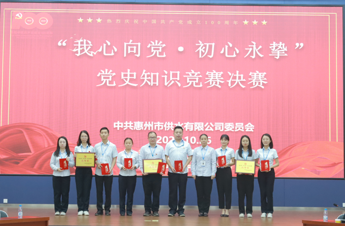 楊翠忠代表市水務(wù)集團黨委對本次比賽的圓滿(mǎn)舉辦表示祝賀與肯定,并依次對每個(gè)代表隊選手的表現作了詳細點(diǎn)評。他指出,公司以慶祝建黨100周年為契機,舉行了演講比賽、征文比賽、攝影比賽等豐富多彩的文體活動(dòng),做到了黨史學(xué)習教育全員覆蓋。本次知識競賽充分調動(dòng)了廣大黨員群眾學(xué)習黨史的自覺(jué)性和積極性,把枯燥的理論知識與活潑的比賽形式結合起來(lái),使大家在積極參與的過(guò)程中不斷鞏固學(xué)習成果,形成了以學(xué)習促實(shí)踐的良好氛圍。希望大家能夠從百年黨史中汲取精神力量、前進(jìn)動(dòng)力,服務(wù)集團供排污一體化改革發(fā)展大局,勇于擔當、善于作為,為全面實(shí)現國企改革工作目標貢獻智慧和力量!
