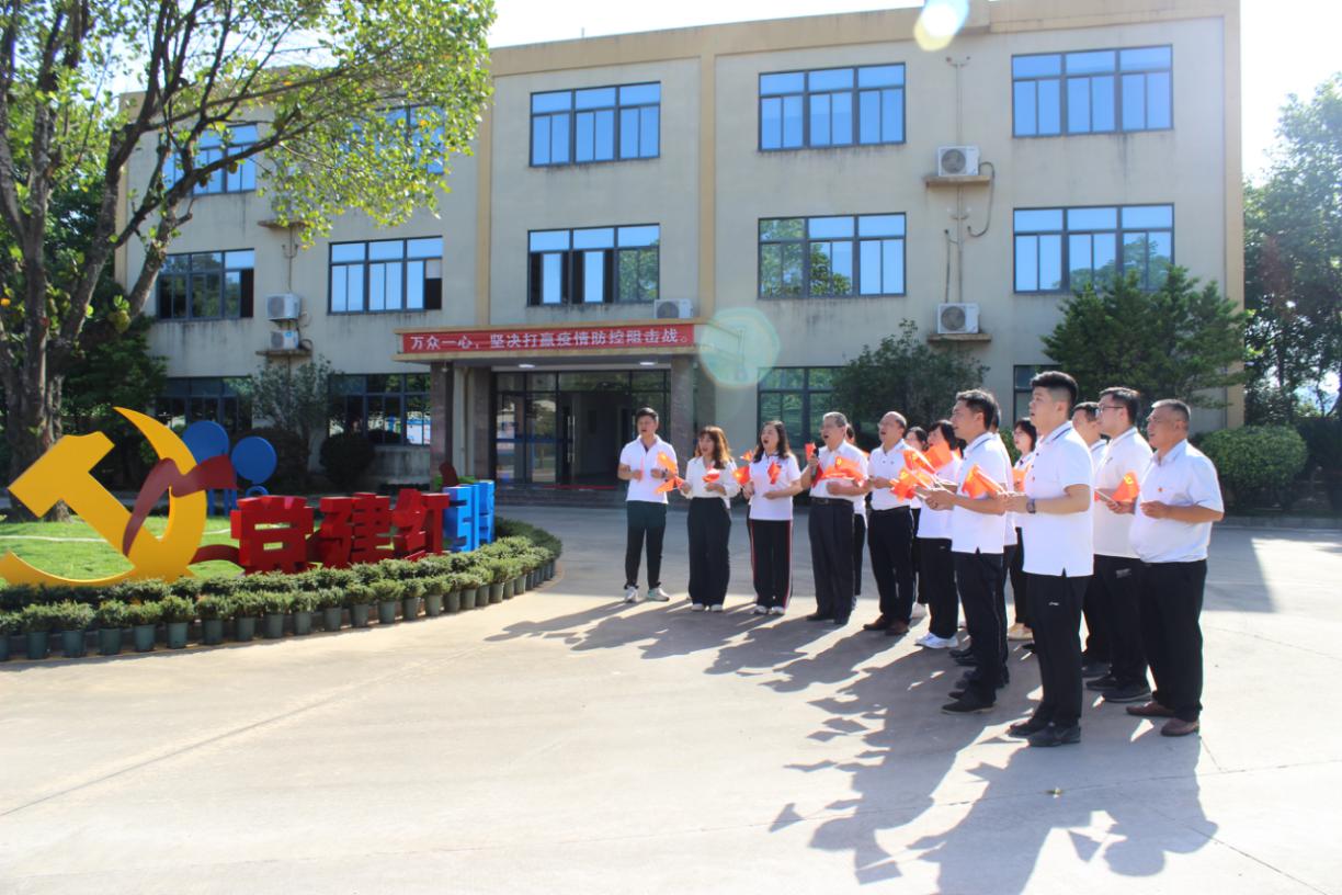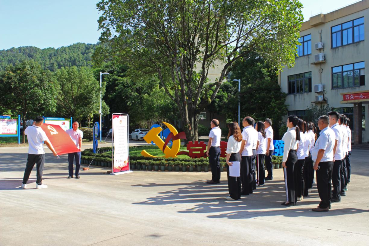 在“黨建紅引領(lǐng)雙碳綠”的花壇雕塑前,面向鮮紅的黨旗,韓雁飛同志帶領(lǐng)全體黨員重溫入黨誓詞、歌唱《沒(méi)有共產(chǎn)黨就沒(méi)有新中國》。伴隨著(zhù)一句句鏗鏘有力的誓詞和聲如洪鐘的歌聲,黨員進(jìn)一步樹(shù)牢初心使命,堅定了對黨忠誠、為共產(chǎn)主義奮斗終身的信心和決心。