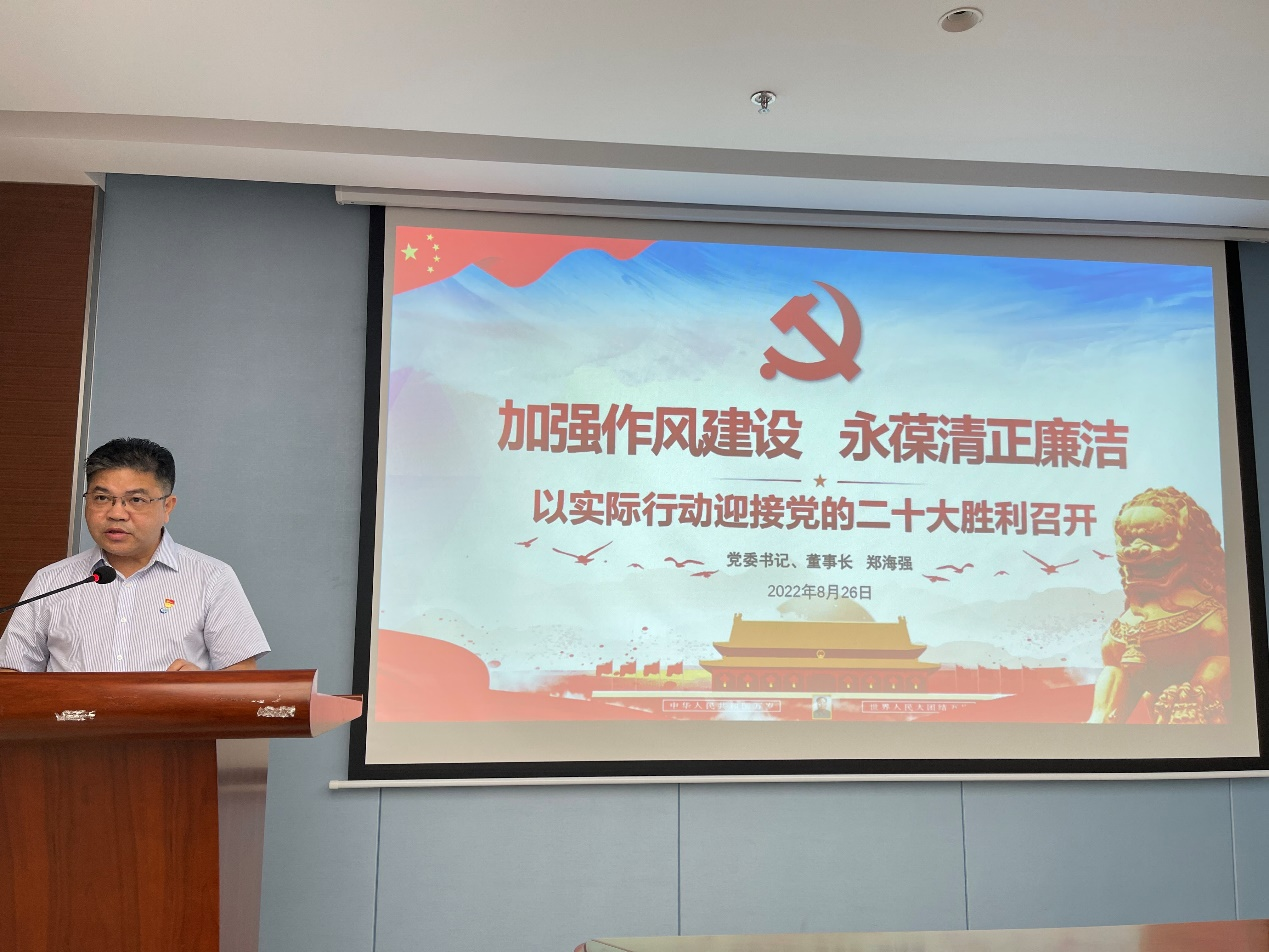 鄭海強為與會(huì )黨員干部講授了紀律教育專(zhuān)題黨課。重點(diǎn)圍繞全面從嚴治黨、黨廉建設、廉潔自律三個(gè)方面教育引導廣大黨員干部加強作風(fēng)建設,永葆清正廉潔。他指出,全體黨員干部要做到政治上清醒、經(jīng)濟上干凈、工作上進(jìn)取、作風(fēng)上務(wù)實(shí)和生活上自重,堅決抵制不正之風(fēng),大力弘揚偉大建黨精神,永葆自我革命精神,忠誠履職、團結奮斗,推動(dòng)全面從嚴治黨、黨風(fēng)廉政建設和反腐敗斗爭向縱深發(fā)展。