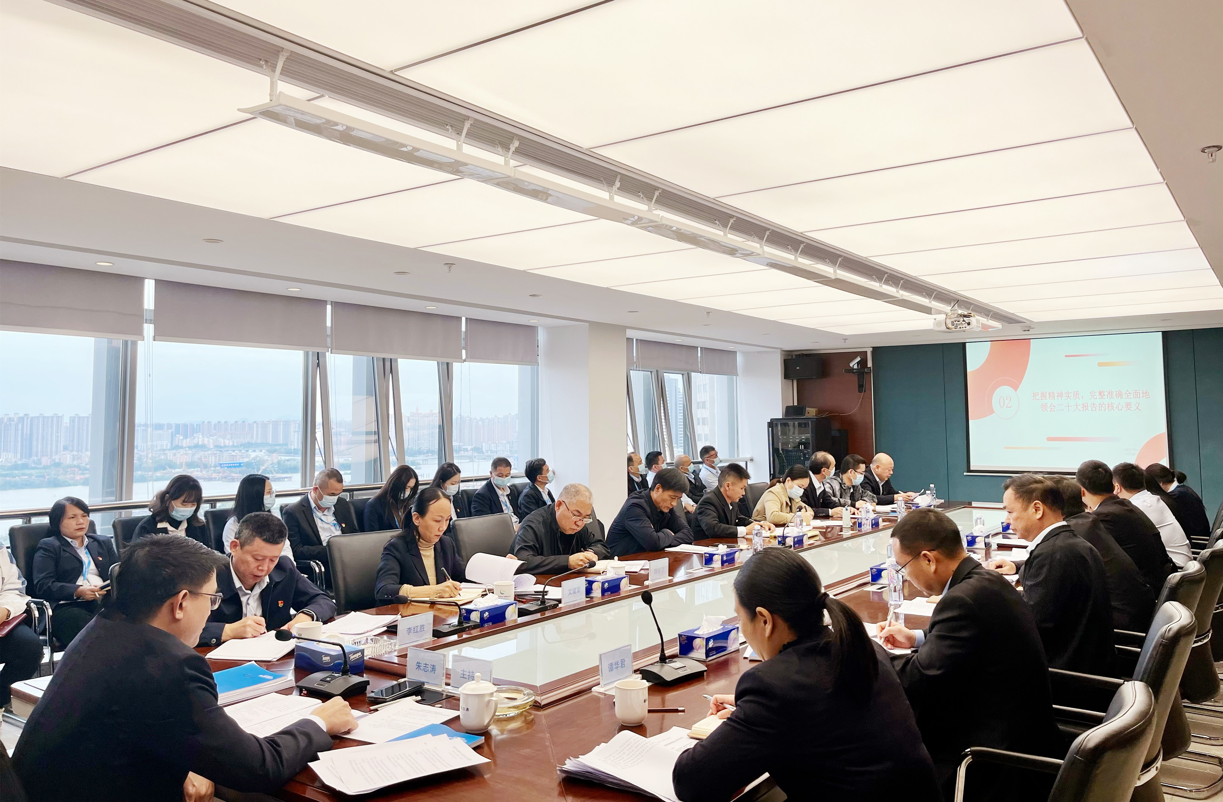 朱志濤以《賡續偉大歷程 奮進(jìn)時(shí)代征程 用二十大精神推動(dòng)企業(yè)高質(zhì)量發(fā)展》為題,回顧黨的二十大召開(kāi)盛況,分別從成就、理論、使命、人民、答案及奮斗等6個(gè)關(guān)鍵詞對黨的二十大報告進(jìn)行系統梳理,幫助大家進(jìn)一步把握黨的二十大精神實(shí)質(zhì),領(lǐng)會(huì )黨的二十大報告的核心要義。隨后,他提出,學(xué)習宣傳貫徹黨的二十大精神,關(guān)鍵在行動(dòng),要立足供水企業(yè)的職責使命,立足公司改革發(fā)展和黨的建設具體實(shí)際,突出抓好“五個(gè)結合”:要同強化黨的政治建設相結合,旗幟鮮明講政治;要同促進(jìn)企業(yè)高質(zhì)量發(fā)展相結合,提質(zhì)增效創(chuàng )效益;要同深化國企改革相結合,把握大勢謀發(fā)展;要同決戰決勝全年任務(wù)目標相結合,提振精神顯擔當;要同推進(jìn)全面從嚴治黨相結合,正風(fēng)肅紀強作風(fēng)。